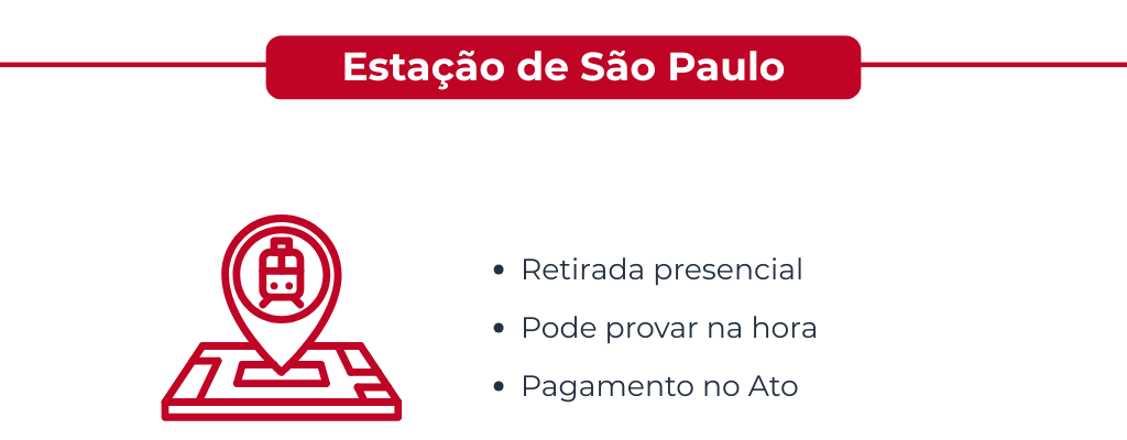 Coleta a partir da estação de trem ou metrô mais próxima do cliente. Disponibilidade e valores calculados conforme endereço informado.