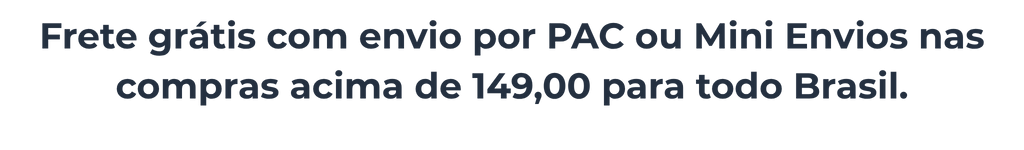 O prazo de entrega é definido pelos Correios e informado no momento da compra. Frete grátis: disponível para todo o Brasil via Mini Envios em compras acima de R$149,00 no site. Essa cortesia é opcional — caso queira receber antes, o cliente pode escolher outro método pago. (Não se aplica a compras no Whatsapp)